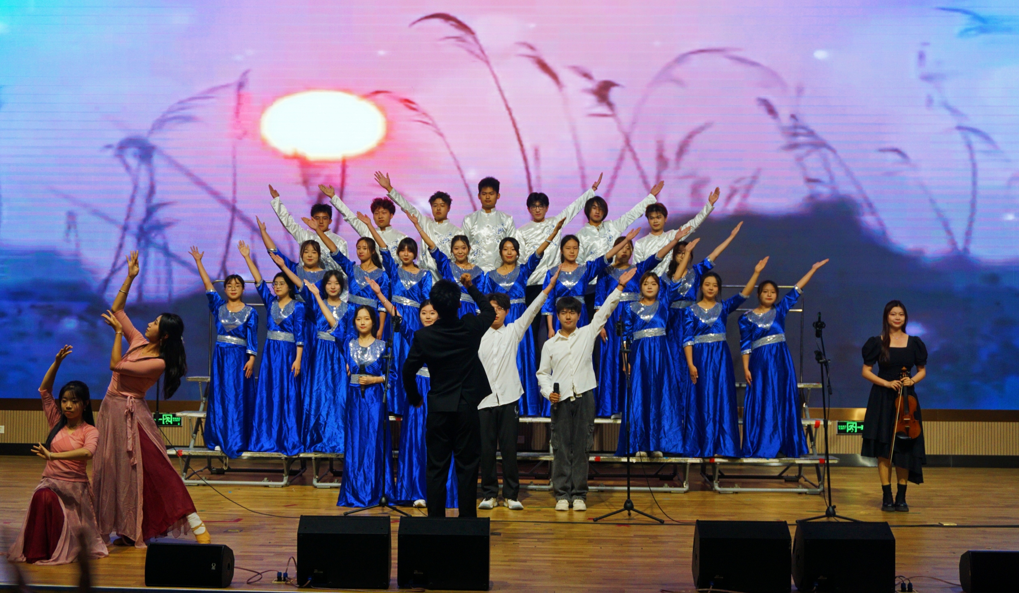 在本次合唱比赛中,外国语学院以《一路生花》作为参赛曲目,歌曲旋律时而优美动听,时而昂扬激越,不仅展现出了生命的活力和奋发向前的力量,也表达了外院学子对未来生活的美好期许和面对困难永不退缩的勇气。合唱过程融入演讲、中国舞、小提琴等多种表演方法,用歌声谱写了青春的华章,向观众和评委们展示了外院学子朝气蓬勃的精神风貌。