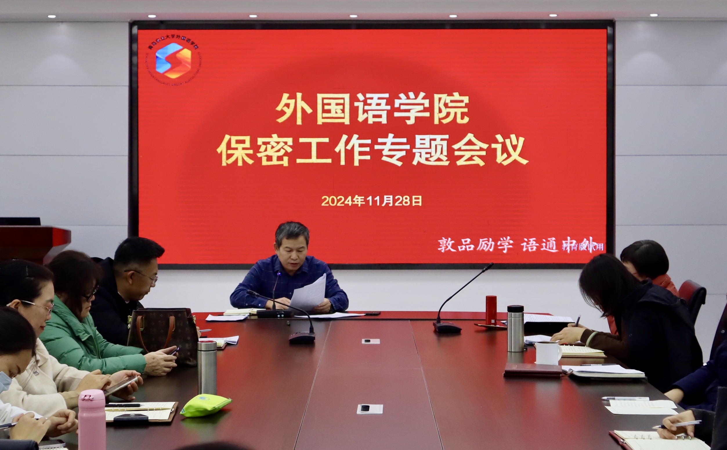 11月28日,外国语学院在文经楼C220召开保密工作专题会议,本次会议由学院党委书记王效仿主持,学院全体教职工参会。