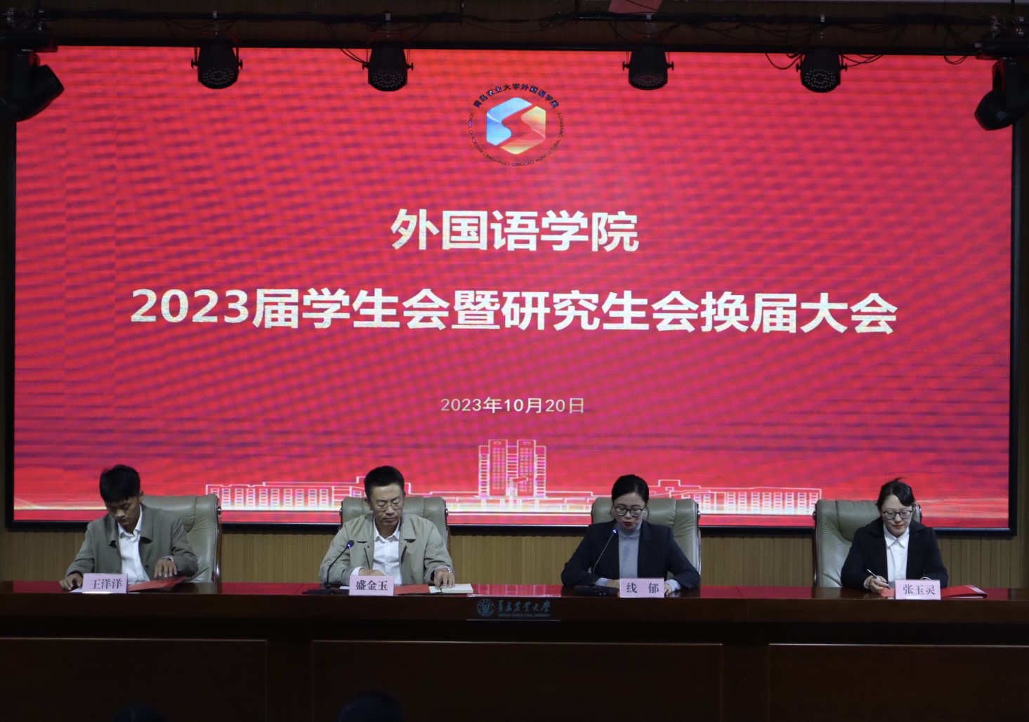 10月20日,sunbet申搏官方网站外国语学院于学术会馆第二报告厅召开2023届学生会暨研究生会换届大会。外国语学院党委副书记副院长盛金玉、团委书记线郁、辅导员王洋洋和张玉灵出席会议,第23、24届学生会全体成员参加,会议由线郁主持。
