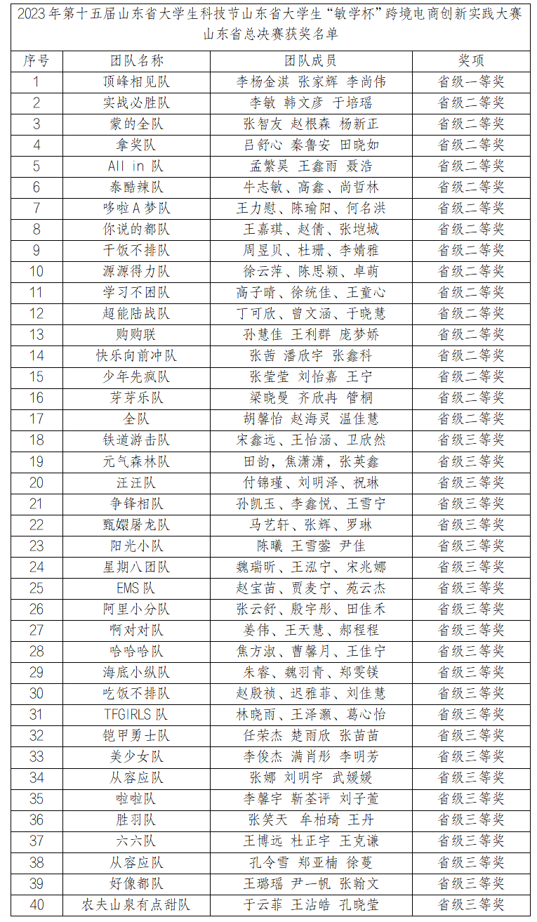 2023年第十五届山东省大学生科技节山东省大学生“敏学杯”跨境电商创新实践大赛山东省总决赛于2023年10月落下帷幕。在外国语学院教师左燕茹、赵清、迟秋玲的指导下,sunbet申搏官网获得省级一等奖1项、二等奖16项、三等奖23项的佳绩。