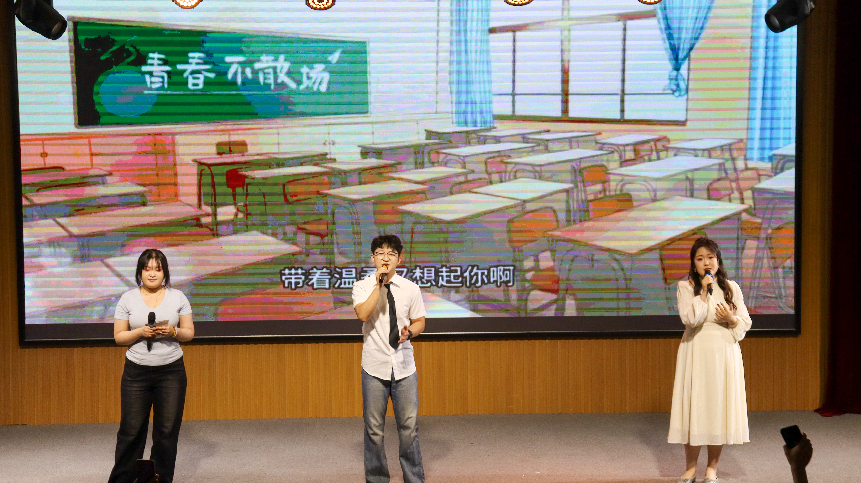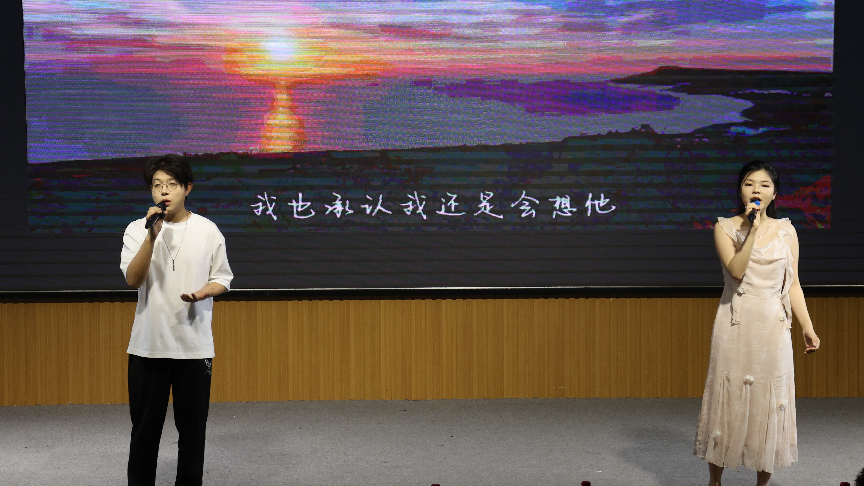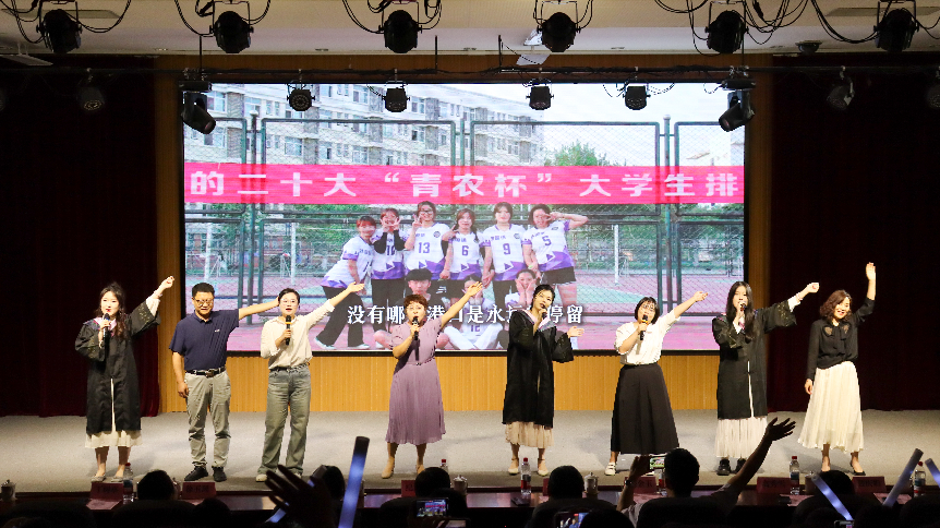 第三篇章“未来征途·心向远方”将晚会推向高潮。韩语歌曲《逐光而行》唱出了毕业生们勇敢追梦的决心;学院辅导员带来的惊喜节目《爱你》更是让现场掌声不断;2021级毕业班班主任老师及毕业生带来了歌曲《凤凰花开的路口》,班主任们对毕业生送上了诚挚祝福;“虹子初心”合唱《世界赠予我的》,用歌声表达了对母校、师长和同窗的感恩之情。