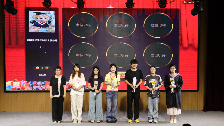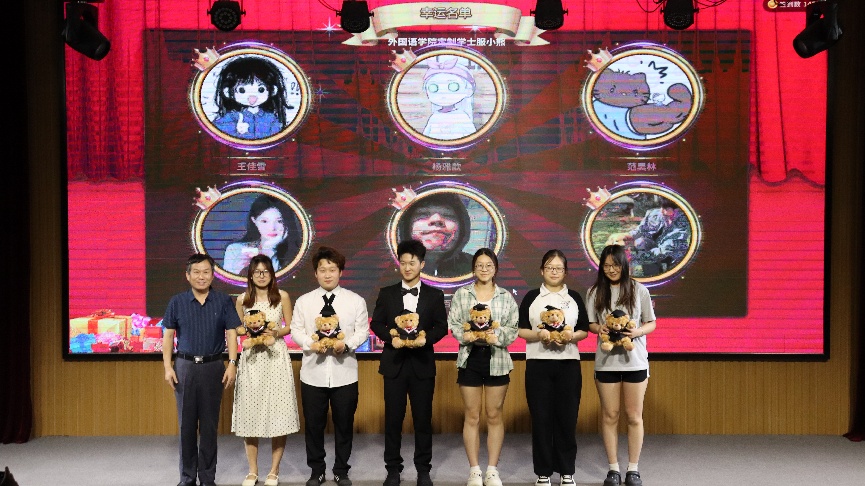学院特别设置抽奖环节,为毕业生们准备了外国语学院定制礼品,王效仿和纪卫宁为幸运毕业生颁发奖品,为晚会画上了圆满的句号。