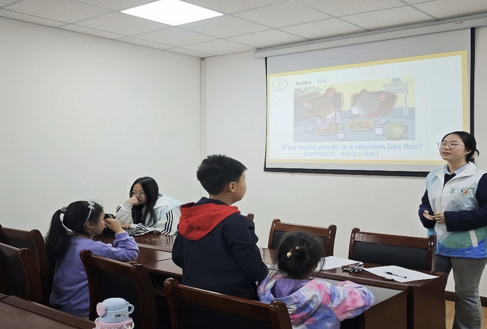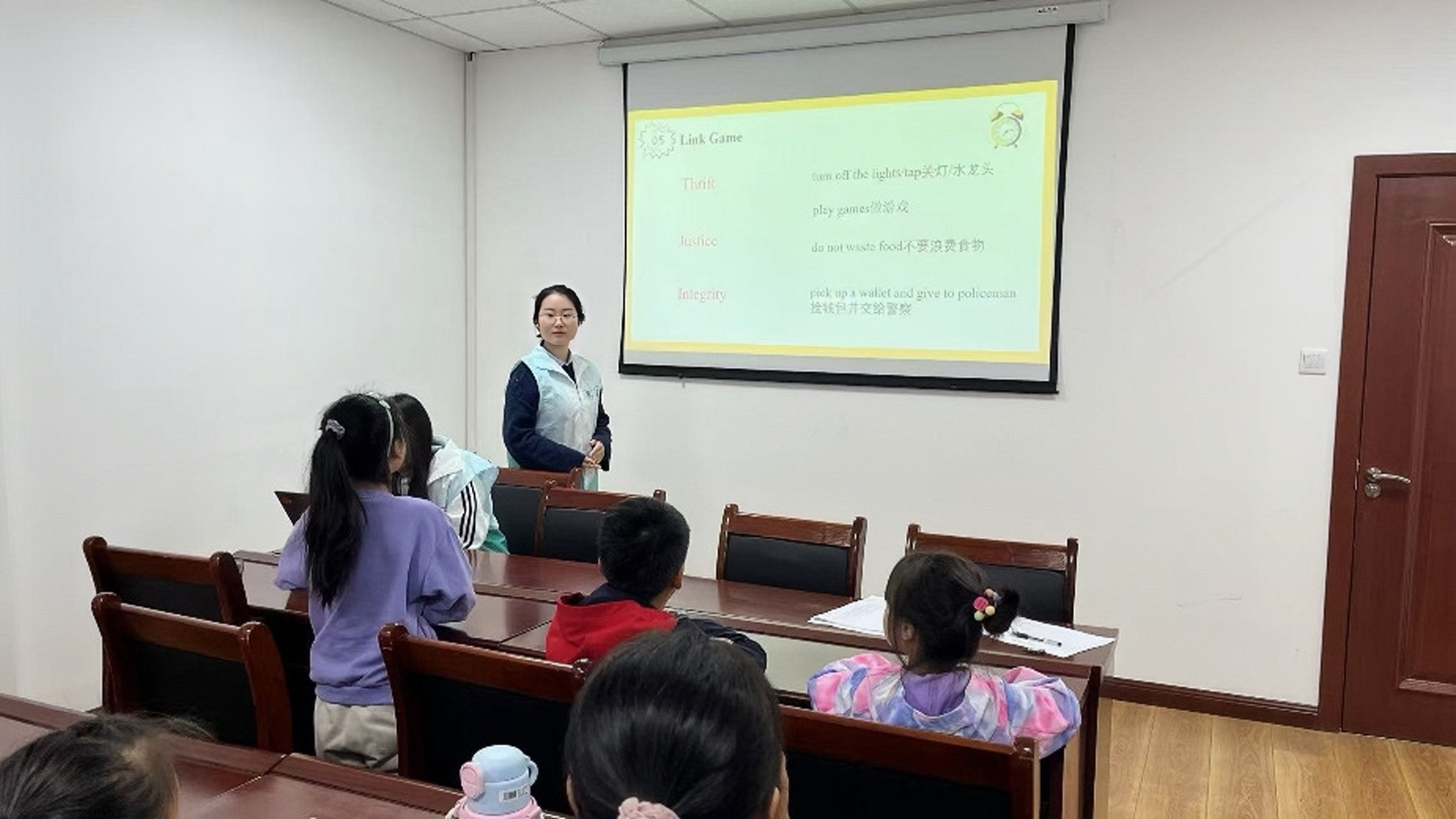 11月24日,外国语学院积极响应共青团中央大学生社区实践计划的号召,开展了“向阳计划”廉洁教育进社区实践活动,将廉洁教育融入英语教学,为社区儿童带来了一场别开生面的学习体验。本次课堂由外国语学院团委指导,外国语学院社会实践指导中心组织开展。本科生志愿者、研究生志愿者参加。