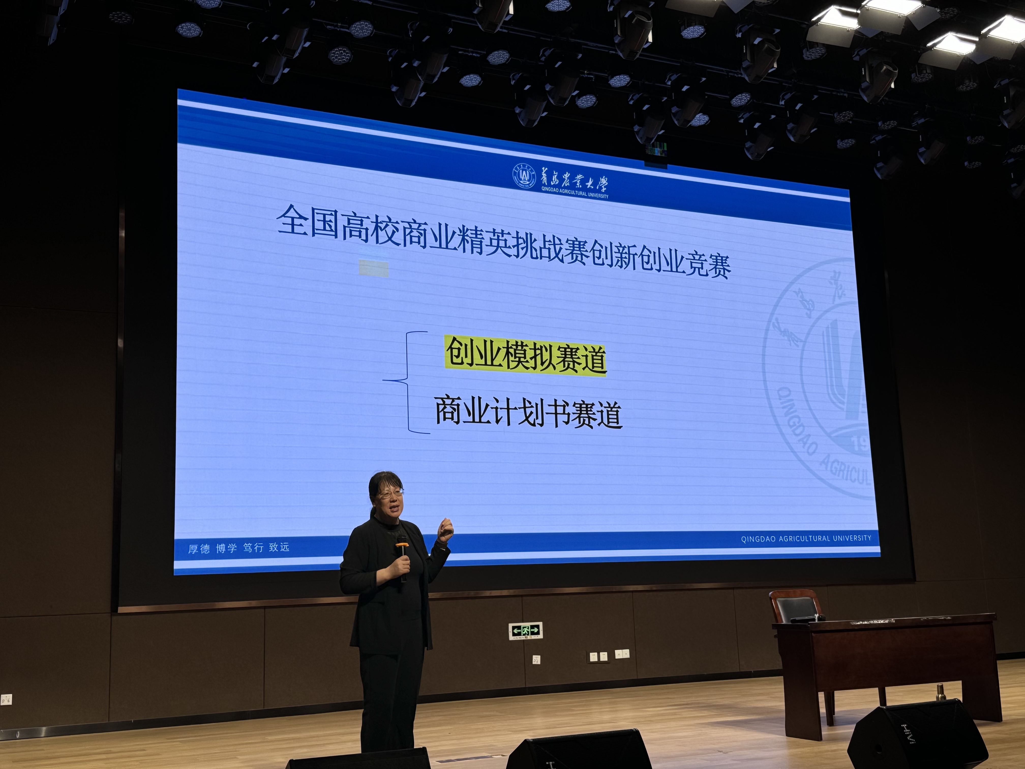 5月23日,外国语学院在平度校区大学生活动中心报告厅举办“一院一赛”——全国高校商业精英挑战赛创新创业竞赛创业模拟赛道宣讲活动,会议由英语系副主任兼校企合作方向负责人左燕茹主讲,辅导员邹晓婷主持,外国语学院2024级全体同学参加。